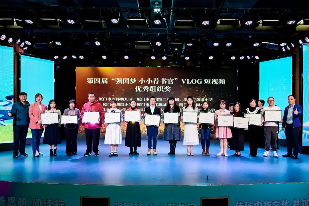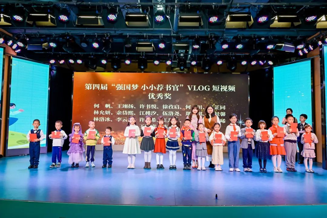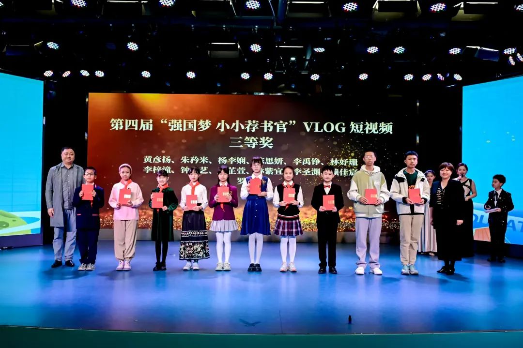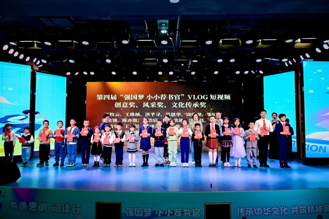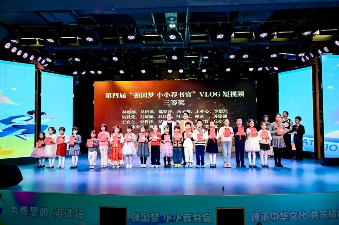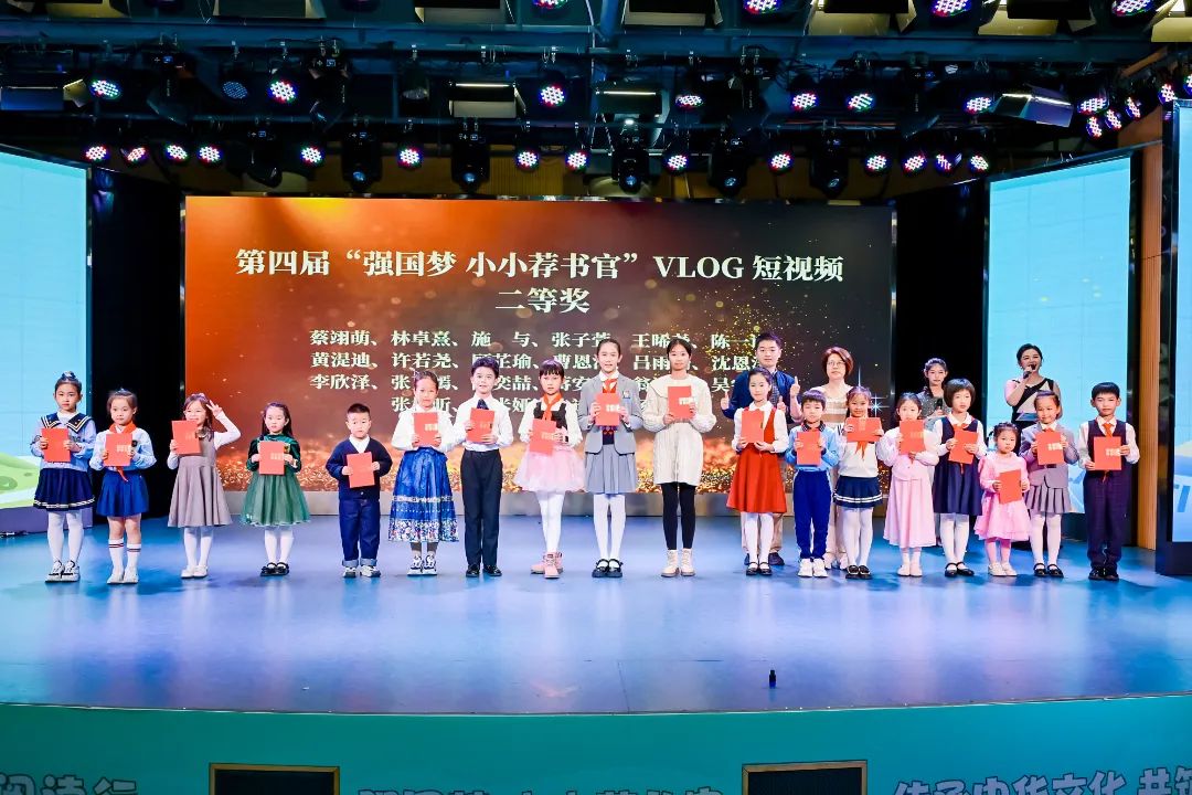 获奖的“小小荐书官”依次上台接受荣誉:11名参赛者荣获“一等奖”,22名参赛者获得“二等奖”,36名参赛者获得“三等奖”,51名参赛者获得“优秀奖”,21名参赛者分别获得“创意奖”“风采奖”和“文化传承奖”。此外,荐书官LOGO征集有3人获创意奖。