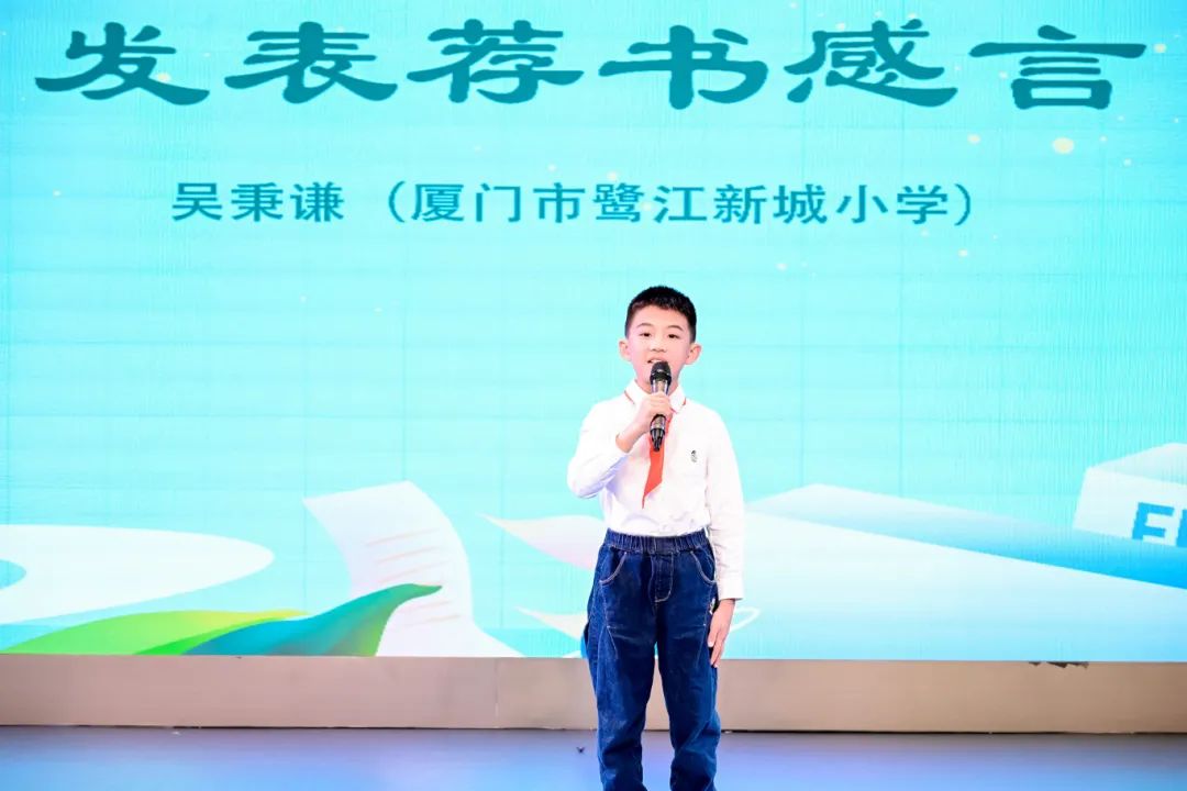 小学中段组一等奖获得者,来自鹭江新城小学的小小荐书官吴秉谦说: